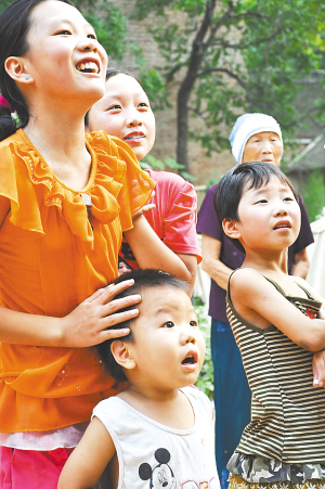 左下图:精彩的木偶戏表演,吸引了孩子们的目光。