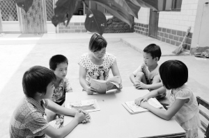 7月21日上午,商水县袁老乡承屯村“代理妈妈”程爱红在为留守儿童读童话故事。暑假期间,该县计生协、妇联启动了“代理妈妈”和留守儿童结对关爱行动,对留守儿童进行学习辅导、生活帮助和心理抚慰,促使留守儿童身心健康成长。