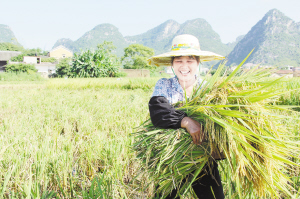 △“大暑”至农事忙 7月22日,广西来宾市武宣县一名农妇在收获早稻。当日是农历二十四节气的“大暑”。广西的早稻成熟,各地农户冒着高温收获早稻,以确保颗粒归仓。 新华社发