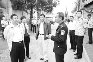 市政府党组成员、市公安局局长姚天民(左一)深入到基层公安机关调研执法规范化建设工作。