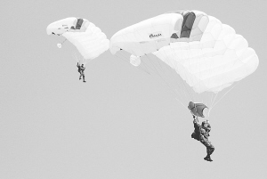塞尔维亚纪念军事航空100周年 9月2日,在塞尔维亚贝尔格莱德军用机场,塞尔维亚跳伞队进行表演。当天,塞尔维亚举行国际航空展,纪念该国军事航空100周年。 新华社记者 汪慧 摄