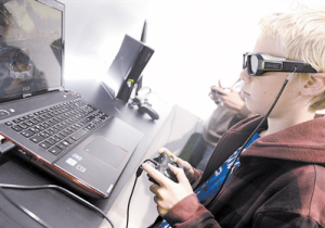 8月31日,在德国柏林举行的消费电子展上,一名男孩在东芝公司展台前体验3D电脑游戏。当日,2012年柏林消费电子展正式开幕。今年的展会于8月31日至9月5日举行,共有1439家参展商。(新华社发)
