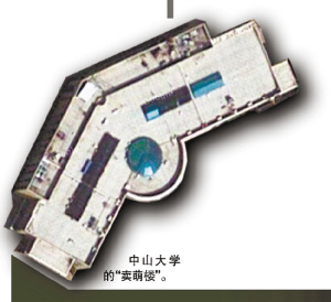 这两天,在中大学生的微博上,流传着这样一栋建筑屋顶的卫星图片,图片中建筑构成一个人脸的形状,有眼睛、有蓝鼻子,还有微微翘起的小嘴,表情微微发笑,透着一股“小奸笑”的意思。“饭堂也卖萌”、“样子真是很搞笑”,学生们高兴地评论着。