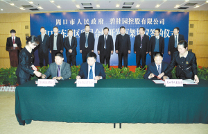 市委常委、副市长刘保仓,碧桂园控股有限公司河南地区总经理杨海波,广东方云投资发展有限公司董事长张景基共同签订了《周口市东新区项目合作开发框架协议》。