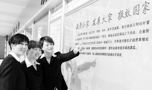 郸城县电业局注重员工的思想教育,通过“家企相融、思行合一”的教育理念,倡导员工爱岗敬业、乐于奉献。图为该局员工正在企业文化墙旁边观看企业精神理念时的场景。(刘兴刚 摄)