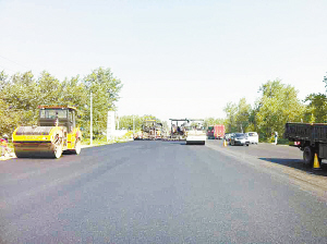 8月7日,在周口市区至西华县城快速通道西华段施工现场,摊铺机、轧路机正在紧张作业。该通道为一级公路,于今年3月20日开工建设,预计西华段10月1日竣工通车。(记者 张猛 摄)