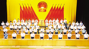 上图 周口市第三届人民代表大会第四次会议在庄严的国歌声中闭幕。(记者 王亚辉 沈湛 摄)
