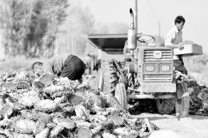 甘肃民勤向日葵丰收 9月5日,在甘肃省民勤县苏武乡橙槽村的麦场上,几名农民正在整理向日葵(食葵)。进入9月,位于甘肃省河西走廊东北部的武威市民勤县15万亩向日葵(食葵)喜获丰收,趁着秋高气爽的晴好天气,当地农民抓紧收割、脱粒和晾晒。新华社记者 郭刚 摄
