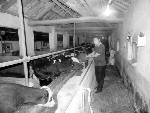 清集镇太康县人大代表、永启养殖合作社党支部书记王永启在引领群众养殖致富上发挥了示范作用。目前,他所办的养殖场存栏肉牛220头。图为王永启在养殖场为牛添加氨化饲料。