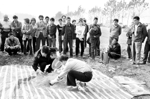 昨日,西华县农业局技术人员在田间地头现场演示用防治药剂拌种,手把手教农民群众如何做好小麦病虫害防治工作。连日来,为有效防止小麦全蚀病的大面积发生,西华县采取有效措施,狠抓小麦全蚀病防治工作,在全县掀起小麦全蚀病防治热潮。