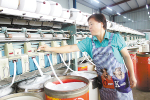 项城市高寺镇党委和政府多措并举,加大招商引资和项目建设力度,引进了一批项目落户高寺,使当地农民在家门口实现就业。图为落户该镇的项城市田野色织有限公司工人正在车间工作。杨光林 张永久 摄