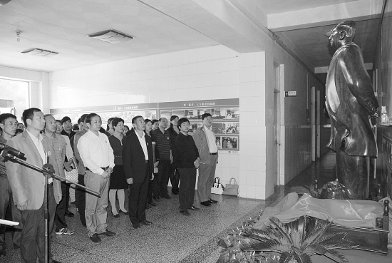 近日,淮阳一高隆重举行毛泽东塑像揭幕仪式,该校100多名师生参加了揭幕式。面对主席塑像,淮阳一高全体师生有了立身的楷模、精神的支柱、求实求知的典范;毛主席塑像的敬立,使该校校园荡漾着和谐、深邃的文化气息,提升了学校的文化品位。 (豆纪锋 摄)