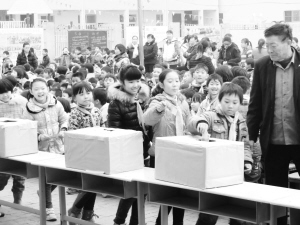 “只要人人献出一点爱,世界将变成美好的人间。” 朱海领是淮阳县冯塘乡留守儿童学校一个学习优秀、听话懂事的九岁小男孩。前不久,孩子在郑州被查出患有白血病。祸不单行,孩子的爸爸因肠道穿孔做了手术,奶奶瘫痪在医院,爷爷听说朱海领的病急得也耳聋了,妈妈带着四岁的小妹妹在医院照看朱海领,孩子每天都要嚷着回学校上学。消息传到淮阳县冯塘乡留守儿童学校后,所有的老师和同学都为他感到揪心,同时也自发倡议捐款,所有的孩子和教职员工都拿出了自己的零花钱和一份爱心,并祝福孩子坚强,爱在你身边,你不会再孤独。学校渴望爱心人士或爱心团体帮助救护孩子。图为捐款现场。(记者 刘彦章 摄影报道)