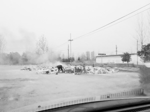 批示十天时间过去了,这些垃圾死角是否已被清理呢?2015年1月6日下午,记者追踪发现,大多数问题得到解决,但莲花路与富民路交叉口的垃圾不仅没有清理干净,反而被点起了大火(如图),滚滚浓烟掺杂着阵阵恶臭,严重污染着环境,附近居民苦不堪言。