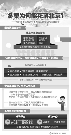 北京和张家口联合申奥提出了“三亿人参与冰雪运动”的愿景,让更多人参与到冰雪运动中,对高水平竞技和全民健身都将起到促进作用。