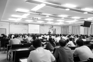 8月6日,国学大师张朋在太康为县政府办、县公路局员工分享了他本人学习《了凡四训》的感悟。王宇先 摄