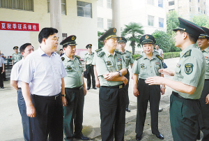 本报讯 (记者 李莉) 8月8日,河南省军区司令员卢长健莅临我市检查指导征兵体检工作,并召开征兵工作座谈会,听取周口军分区和县乡村相关部门人员的意见和建议。市长刘继标,市委常委、周口军分区政委元相学,周口军分区司令员罗明豪,副市长洪利民,周囗军分区参谋长薛振喜等陪同调研。