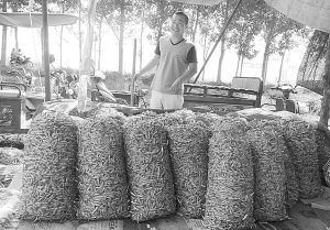 8月30日,沈丘县北城办事处大辛营村的农田里,绿油油的小米椒挂满枝头,据承包大户辛克强介绍,尽管今年的小米椒行情不如去年,然而多亏持有订单合同,每斤能卖上1块多钱,亩收入可达5000多元。图为当地种植大户正在装包整理小米椒。 谢辛凌 程建华 摄