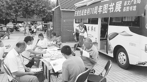 8月30日,一些群众在太康爱心书屋阅读书籍。一段时间以来,太康爱心书屋制作抗战图片,开设纪念抗战图书专架,让读者更好地了解抗战时期中国军民浴血奋战的英勇事迹,以纪念中国人民抗日战争暨世界反法西斯战争胜利70周年。(刘晓刚 摄)