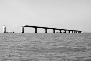 港珠澳大桥东接香港特区,西接广东省珠海市和澳门特区,是粤港澳三地首次合作建设的超大型跨海交通工程。2009年12月正式开工,建成后将成为全球最长的跨海大桥。届时,珠海到香港只需约35分钟车程。