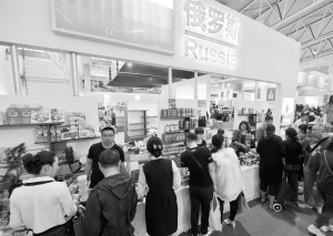 9月6日,市民在俄罗斯展位前选购特色产品。当日,为期六天的第十届中国—东北亚博览会在吉林长春市会展中心落下帷幕。据组委会统计,本届东博会共签订投资合同项目325个,引资总额达到2201亿元。新华社发