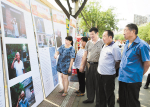 9月5日,扶沟县市民正在观看纪念抗日战争胜利70周年“抗战老兵纪实摄影展”。据悉,这次摄影展由县委宣传部主办、县文联承办,以图文并茂的形式展出12名健在抗战老兵的事迹,吸引众多群众驻足观看,并引起了群众的强烈共鸣。