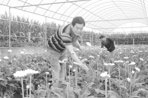 项城市南顿镇积极培育新的经济增长点,大力发展花卉、中药材、食用菌等产业,促进了农业增效、农民增收。图为花农正在管理佛朗花。张永久 摄