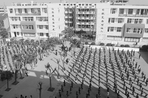 在经典诵读的基础上,学校结合实际,将诵读与课间活动有机结合起来,编成“《弟子规》律动”、“《三字经》律动”,这些“律动”集德育、智育、体育、美育于一体,既锻炼了学生的身体,又丰富了校园文化内涵,形成了一道亮丽的风景线。