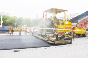 为迎接全国干线公路大检查,县公路局积极争取项目,对淮郸路、羲皇大道等路段进行了中修罩面,对沿线绿化带进行修剪,桥梁复漆,打造了畅洁绿美安的公路环境。图为羲皇大道中修罩面施工现场。(魏兰荣 赵宁 摄)