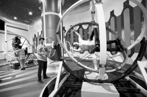 “梦东方·未来世界”航天主题乐园开门迎客 9月27日,游客在“梦东方·未来世界”航天主题公园内体验电动航天训练器。当日,“梦东方·未来世界”航天主题乐园在河北三河燕郊国家高新技术产业开发区落成并开门迎客。该项目投资4亿元人民币,占地33700平方米,内设一项多媒体投影秀及13项互动展览,集航天科技展览展示、科技娱乐于一体,游客可在参观游览、互动体验过程中了解学习航天科技知识,感受航天科技的魅力。新华社发