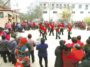 11月22日,商水县平店乡胡庙村农民正在排练表演广场舞。近年来,该乡以“美丽乡村、清洁家园”活动为契机,狠抓人居环境改善,道路通、路灯亮、环境好、心舒畅,农民学跳广场舞成了一道亮丽的风景。