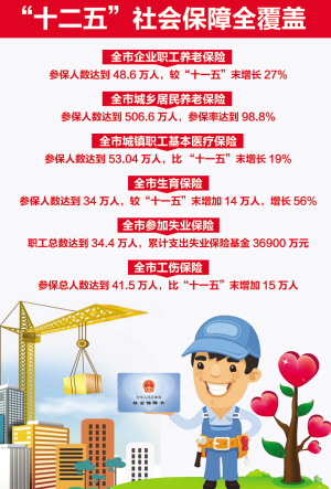 “十二五”期间,我市坚持“广覆盖、保基本、多层次、可持续”的方针,编织了一张横覆1000多万人口,纵贯养老、医疗、就业、社会救助和福利的“安全网”,多项制度不断由城镇延伸到乡村,兜起了全市百姓的幸福生活。