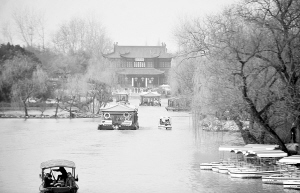 江苏扬州:烟花三月赏春光 3月6日,游客在扬州瘦西湖坐船游玩。随着气温升高,江苏扬州市瘦西湖景区杨柳吐绿,繁花似锦,吸引许多中外游客前来踏春赏花。新华社发