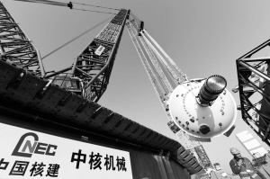 全球首座四代核电站反应堆压力容器吊装成功 3月20日,在华能山东石岛湾核电厂,反应堆压力容器在吊装中。当日,全球首座高温气冷堆示范工程压力容器在华能石岛湾核电厂吊装成功,标志着我国在高温气冷堆示范工程建设和核电装备制造两方面均取得重大突破。新华社记者 郭绪雷 摄