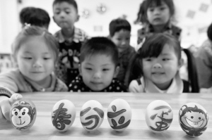 3月20日,河北省邯郸市峰峰矿区区直机关幼儿园的小朋友们在玩“立蛋”游戏。当日是二十四节气中的春分,多地举行“立蛋”活动。我国民间有“春分到、蛋儿俏”的谚语。新华社发