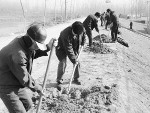 近日,商水县邓城镇的群众正在沙河堤上挖树坑备种。春暖花开之际,邓城镇党委、镇政府积极组织全镇干群掀起春季植树造林高潮,已新栽树苗4万多棵。乔连军 摄