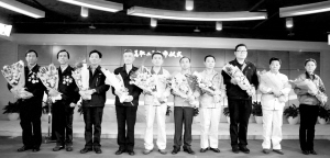 4月25日,耿家盛、高凤林、顾秋亮、胡双钱、宁允展、周东红、管延安、方文墨、卢仁峰、潘玉华等10位“最美职工”(从左至右)在发布仪式上。 在“五一”国际劳动节来临之际,中央宣传部、中央文明办、全国总工会在中国文明网向全社会公开发布耿家盛等10位“最美职工”的先进事迹。新华社发