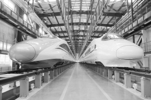 首批两组高铁动车于5月21日晚间和22日凌晨先后抵达昆明,经过全面检查后,这两组高铁动车将尽快投入沪昆高铁云南段和云桂铁路云南段的联调联试。图中左侧为CRH380A动车组,右侧为CRH2A动车组。目前,沪昆高铁云南段已全线铺通,云桂铁路云南段还在紧张铺轨中。