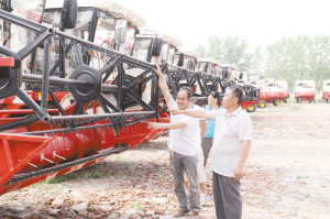 夏收将至,项城农民积极购买大型农业机械,为夏收做准备。图为贾岭镇农民在选购收割打捆一体机。李光辉 王洁石 摄