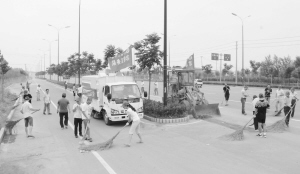 为冲刺省级文明城市创建,周口市公路局应急抢险中心购置了扫路机、铲车、翻斗车等机械,组织40多人的志愿服务队,对武盛大道中段近6公里的道路进行为期一周的集中清扫清障行动。记者 王映 摄