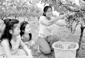 草莓采摘余香犹存,葡萄又已硕果满枝。位于川汇区和西华交界处的玉桂千亩生态葡萄园又迎来了收获的季节,晶莹剔透的串串葡萄吸引了大量游客。近年来,我市逐步挖掘特色农业资源,积极推进农业示范园建设,打造了河南省种植面积最大、品种最优、栽培技术最先进的示范性玉桂千亩生态葡萄园等一批特色农业基地,以特色农业基地为平台,创新农业旅游融合发展思路,融入旅游元素和功能,引导特色农业基地按照“可看、可干、可带”的原则进行开发建设。游客既可以体验采摘之乐,又能体验最真实的田园农家生活。