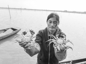 太湖“水上牧场”迎丰收 10月9日,湖州市吴兴区织里镇乔溇村良华水产合作社的养殖户在展示太湖蟹。金秋十月,太湖南岸的太湖蟹大量上市,“水上牧场”的养殖户迎来了丰收季节。新华社发