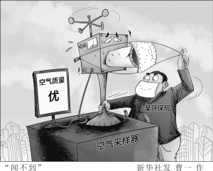 近日有媒体曝光,西安市环保局长安分局工作人员,擅自进入一家环保部直属的空气质量监测站,用棉纱堵塞空气采样器,致使数据失真。据悉,此事发生在今年3月,目前5名涉事工作人员已被移交司法机关处理。本该认真履行空气质量监测职责的环保部门工作人员,竟想出给空气采样器“戴口罩”的歪招。岂不知这样做,“过滤”的是数据,欺骗的是上级,蒙蔽的是良心。