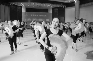 上图: 5月21日,河南省老年人第七套健身秧歌基层培训班项城站举行开班仪式,来自周口各县市的59支代表队的298名广场舞爱好者参加了培训。此举进一步弘扬了民族优秀传统文化,促进了老年文化体育事业健康发展。图为培训班现场。张永久 摄