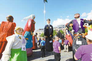比利时鲁汶市20日举行“巨人”游行。比利时拥有历史悠久、内容丰富的“巨人”文化,各种节庆活动中经常能够见到“巨人”的身影。新华社发