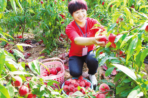 昨日,游客在扶沟县和顺农牧专业合作社采摘鲜桃。该合作社占地1000多亩,年产各种鲜果200多万斤,吸收当地农民和贫困户20人就业。谷志方摄