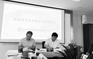 本报讯 近日,北控清洁能源集团有限公司与河南万江新能源集团有限公司在北控清洁集团签署战略合作协议,建立战略合作伙伴关系。北控清洁能源副总裁赵建伟、万江集团总经理侯涛等出席仪式。