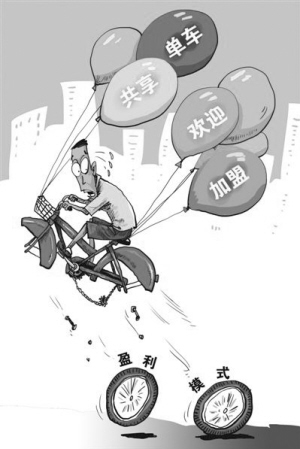 “免费提供软件平台,每辆单车只需缴纳押金,合作终止后押金退还”“保守估计,半年回本”……在各大城市纷纷采取措施,规范共享单车投放的同时,一些共享单车企业转而用夸大宣传的方式招揽加盟商。有的甚至打出“高额回报”的诱饵招商,却不提醒存在的风险。这正是: