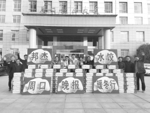 12月22日是冬至,也是《周口晚报》创刊14周年。周口晚报和河南恒自然食品有限公司联合举办“周口晚报创刊纪念‘邦杰水饺杯’暖冬行”公益活动,把爱心饺子送至近千个贫困户家中。王映 摄