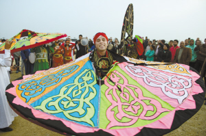 12月21日,在埃及法尤姆,当地人在加龙神庙前表演苏菲舞庆祝日光节。当日,在埃及法尤姆省,游客和当地民众在加龙神庙前举行一年一度的冬至“日光节”庆祝活动。